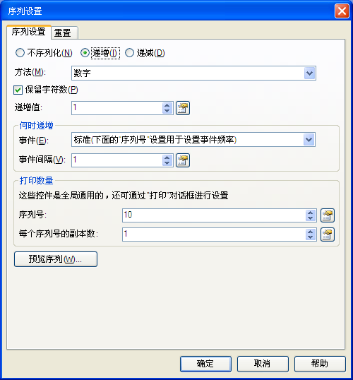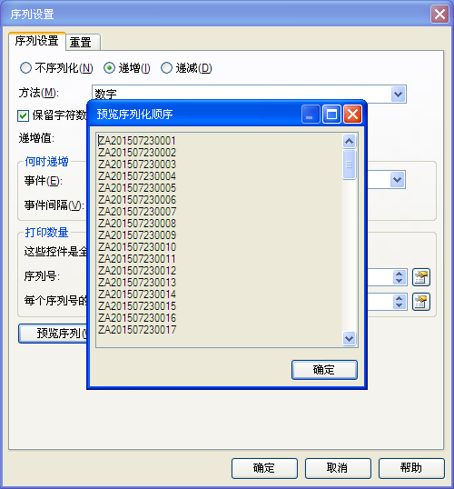 3、單擊下面的“預(yù)覽序列”,您可以預(yù)覽到序列化順序,查看自己設(shè)置的是否正確;