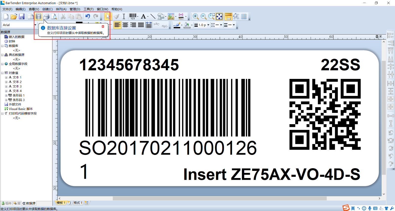 1、第一步當(dāng)然是鏈接數(shù)據(jù)文件了,這個(gè)時(shí)候我們打開(kāi)我們之前基礎(chǔ)培訓(xùn)教程中完成的標(biāo)簽?zāi)0暹M(jìn)行演示:點(diǎn)擊紅框中數(shù)據(jù)庫(kù)連接設(shè)置