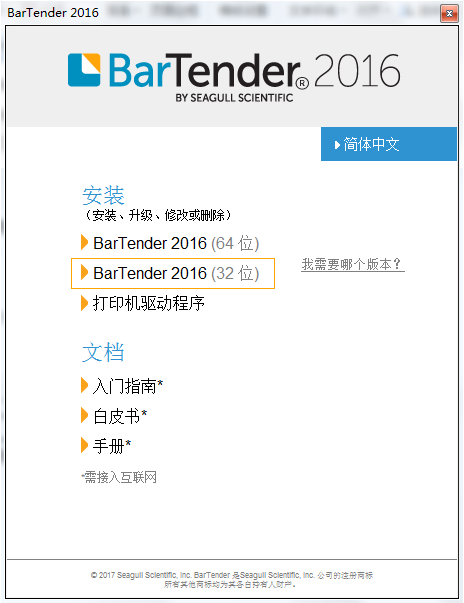 請(qǐng)根據(jù)電腦操作系統(tǒng)選擇安裝64位或者32位和軟件,但是所有電腦安裝的版本需要一致,如果不清楚的可直接安裝32位的。 選擇安裝語言 安裝必需的環(huán)境和數(shù)據(jù)庫