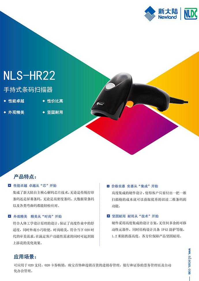 NLS-HR22手持式條碼掃描器能快速地識(shí)讀紙張/屏幕的一維&二維條碼。該產(chǎn)品擁有良好的一維&二維低品質(zhì)條碼識(shí)讀性能,低功耗,接口豐富,具有良好的性價(jià)比。適用于O2O支付,O2O卡券核銷,珠寶首飾和連鎖百貨的進(jìn)銷存管理,銀行和證券的票務(wù)管理以及自動(dòng)化辦公管理。