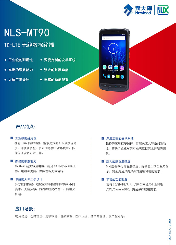 NLS-MT90 便攜式數(shù)據(jù)采集器內(nèi)置深度定制的安卓操作系統(tǒng),擁有工業(yè)級的耐用性,4500mAH超大容量電池,支持一維和二維條碼掃描,可通過 4G無線數(shù)據(jù)通信、Wi-Fi 進(jìn)行數(shù)據(jù)的傳輸。 廣泛應(yīng)用在物流快遞、倉儲管理、連鎖零售、食品溯源、醫(yī)療衛(wèi)生、經(jīng)銷商管理、資產(chǎn)盤點(diǎn)等行業(yè)。