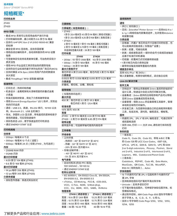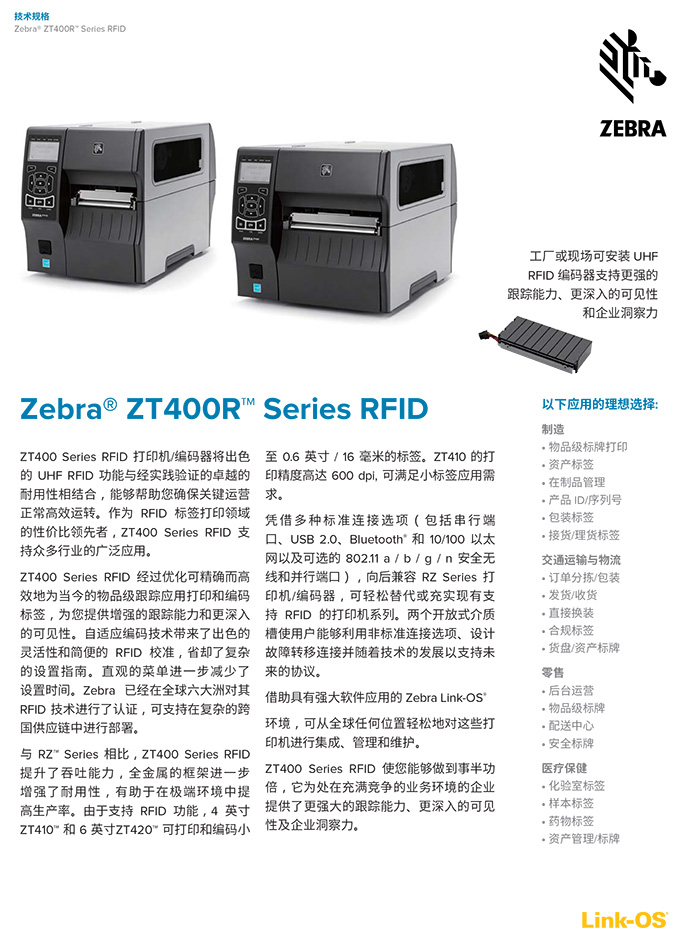 首頁條碼打印機 條碼打印機 ZT400 系列 RFID 打印機