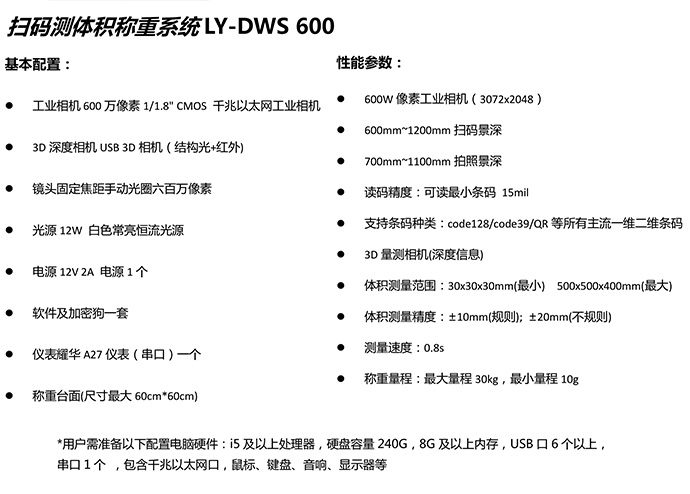 掃碼測體積稱重系統(tǒng)LY-DWS600采用高科技3D掃描技術(shù),可快速獲取包裹的長寬高、重量、快遞單號、圖像等信息,提高效率10倍以上。采用模塊化設(shè)計,配置及維護簡單,可幫助企業(yè)一次性解決稱重、體積測量、條碼識別、人工輸入等四大基礎(chǔ)功能,主要應用于物流配送及倉儲環(huán)節(jié)。機器美觀大方、占用面積小、節(jié)省場地和人工,大幅度減少了作業(yè)空間及操作人員數(shù)量。