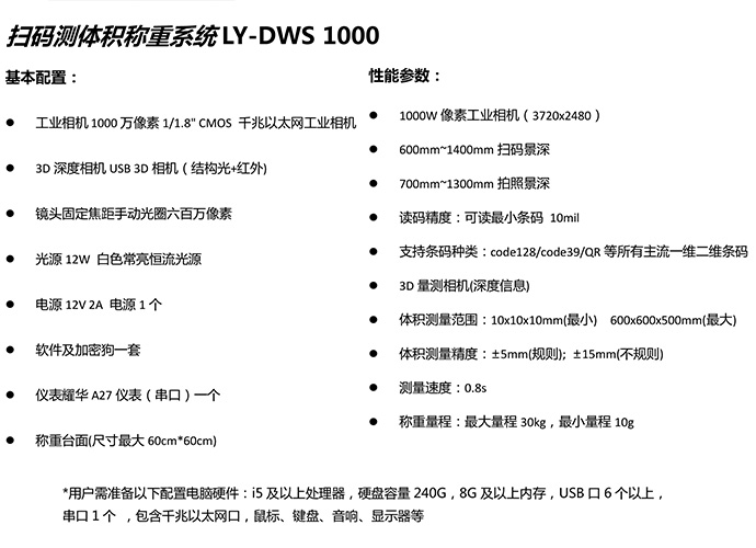 掃碼測(cè)體積稱(chēng)重系統(tǒng)LY-DWS1000采用高科技3D掃描技術(shù),可快速獲取包裹的長(zhǎng)寬高、重量、快遞單號(hào)、圖像等信息,提高效率10倍以上。采用模塊化設(shè)計(jì),配置及維護(hù)簡(jiǎn)單,可幫助企業(yè)一次性解決稱(chēng)重、體積測(cè)量、條碼識(shí)別、人工輸入等四大基礎(chǔ)功能,主要應(yīng)用于物流配送及倉(cāng)儲(chǔ)環(huán)節(jié)。機(jī)器美觀大方、占用面積小、節(jié)省場(chǎng)地和人工,大幅度減少了作業(yè)空間及操作人員數(shù)量。