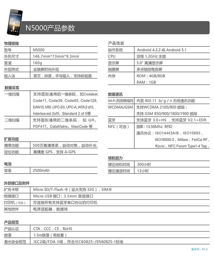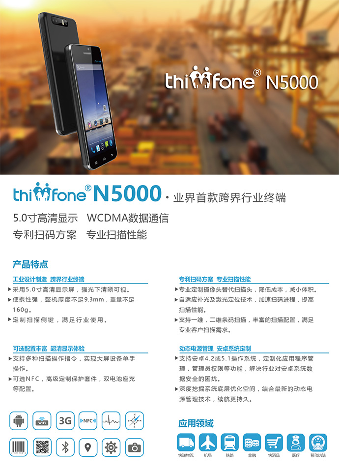 N5000作為行業(yè)首款跨界行業(yè)終端,完全顛覆了傳統(tǒng)行業(yè)終端形態(tài),如同民用手機般輕薄。同時加上自主研發(fā)的軟解碼高速掃描技術(shù),開創(chuàng)了行業(yè)對大屏終端的應(yīng)用。