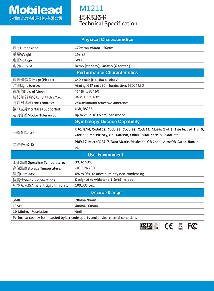 摩比力特 mobilead M1211 手持式掃描槍