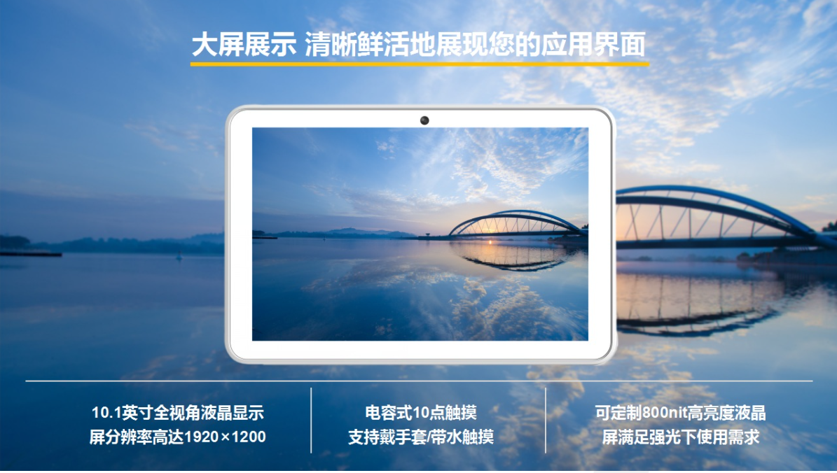 顯示屏幕:10.1英寸全視角液晶顯示屏,電容式10點觸摸,支持帶水觸摸;分辨率1920×1200,普通亮度370nit(可定制高亮800nit)