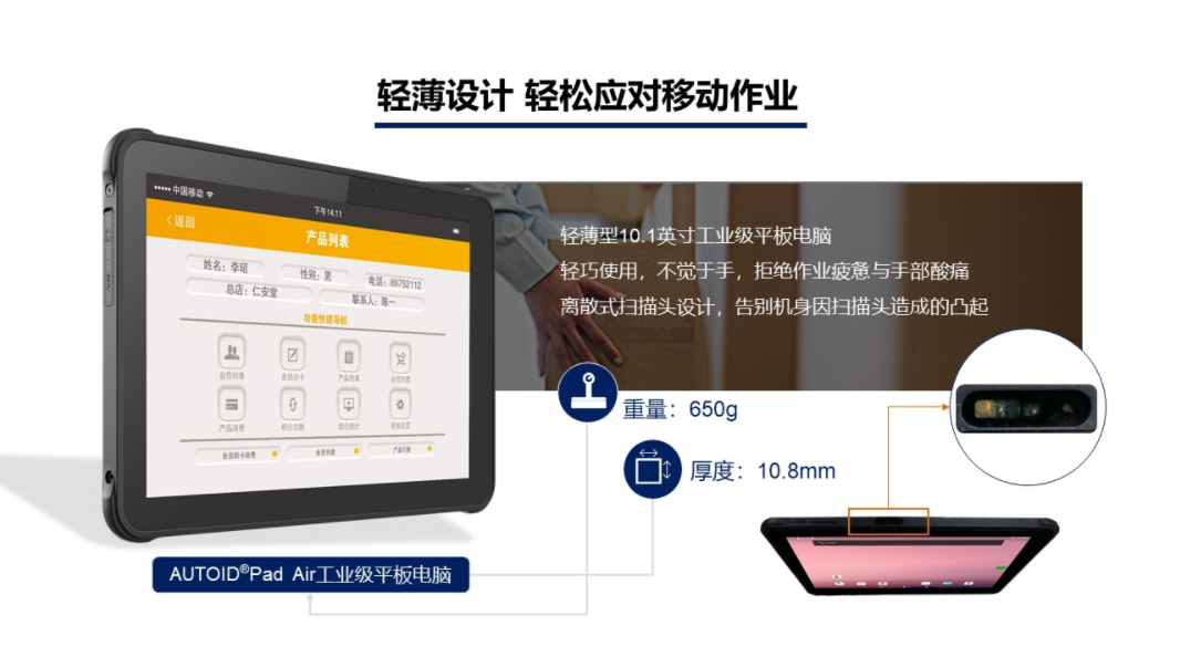 指示燈:一顆紅綠雙色,紅色充電指示(低電量呼吸)、綠色充電滿(mǎn)指示;一顆紅藍(lán)雙色燈,藍(lán)色信息提示(呼吸燈),紅色掃描指示燈