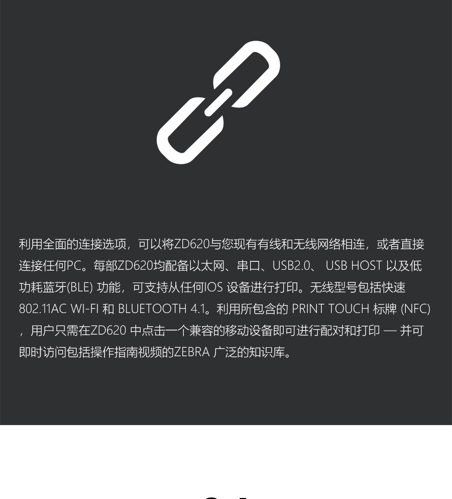 ZD620 取代了 Zebra 廣受歡迎的 GX 系列打印機(jī),以卓越的打印質(zhì)量和最先進(jìn)的功能超越傳統(tǒng)桌面打印機(jī)。ZD620t 提供一流的打印速度 8ips 、203 dpi 和 6ips 、300 dpi ,實(shí)現(xiàn)最大打印機(jī)吞吐量和生產(chǎn)力。可以將 ZD620 連接到現(xiàn)有的有線和無(wú)線網(wǎng)絡(luò),或直接連接到任何 PC。