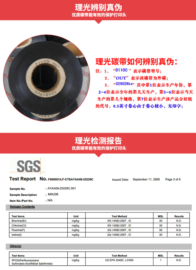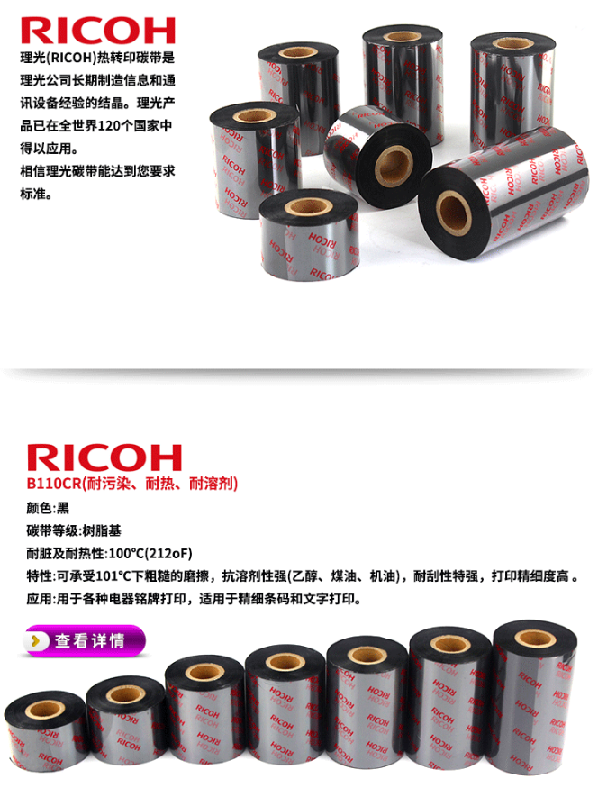 B110CR 全樹脂基碳帶,圖形打印精細(xì)度高,600DPI下可打印5號(hào)字體,耐磨擦耐腐蝕性能超強(qiáng),具寬廣的標(biāo)簽適應(yīng)范圍。能滿足各種苛刻環(huán)境要求,具有優(yōu)秀的防靜電背涂層,可承受150℃下粗糙紙的摩擦。適用于精細(xì)條碼和文字打印,耐刮性要求特高的場所,如各種電器銘牌打印、珠寶標(biāo)簽、醫(yī)藥及各種特殊材質(zhì)標(biāo)簽等。