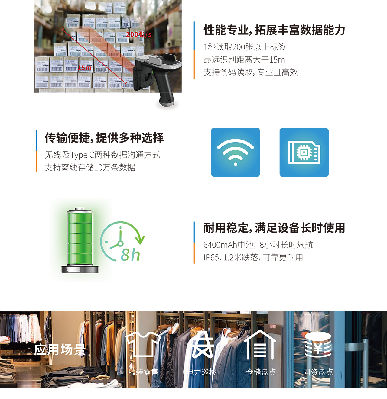 AUTOID UM3的應(yīng)用范圍廣泛,包括服裝盤點(diǎn)、倉儲(chǔ)盤點(diǎn)、資產(chǎn)管理及巡檢等領(lǐng)域,為移動(dòng)終端設(shè)備提供了強(qiáng)大的UHF RFID功能擴(kuò)展 。
