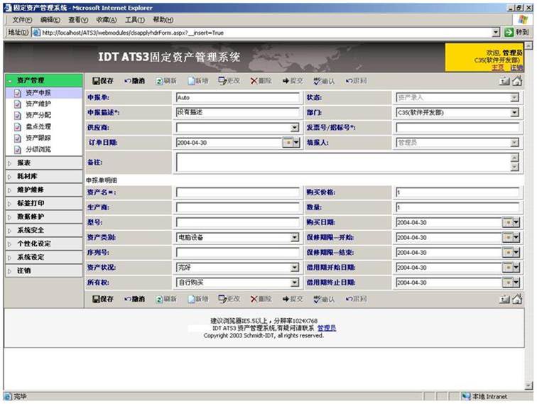 •ATS - 固定資產(chǎn)管理系統(tǒng)是一套基于中小型企業(yè)對分散在企業(yè)內(nèi)部的各種固定資產(chǎn),實(shí)現(xiàn)有效管理的應(yīng)用系統(tǒng)