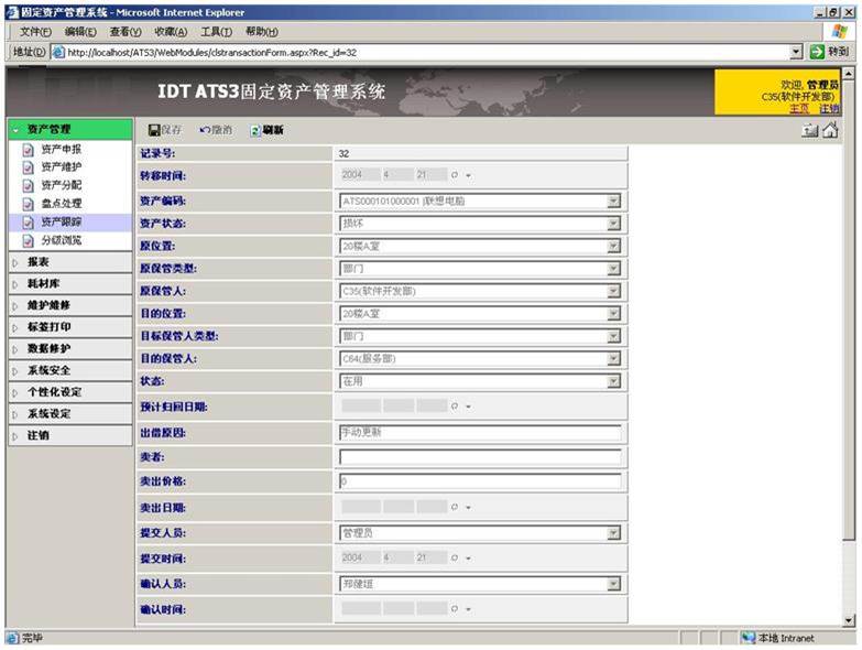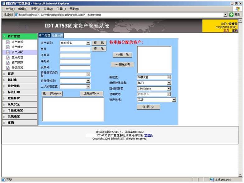 •ATS - 固定資產(chǎn)管理系統(tǒng)是一套基于中小型企業(yè)對(duì)分散在企業(yè)內(nèi)部的各種固定資產(chǎn),實(shí)現(xiàn)有效管理的應(yīng)用系統(tǒng)